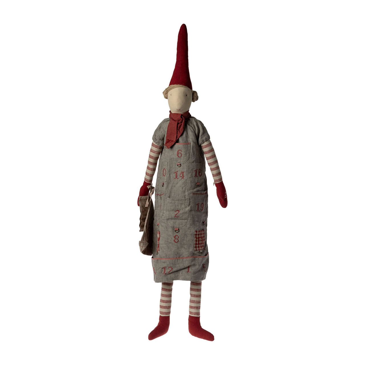 Das Pixie Kalendermädchen hat 24 Ringe und Taschen, um Süssigkeiten oder liebevolle Kleinigkeiten anzubringen.